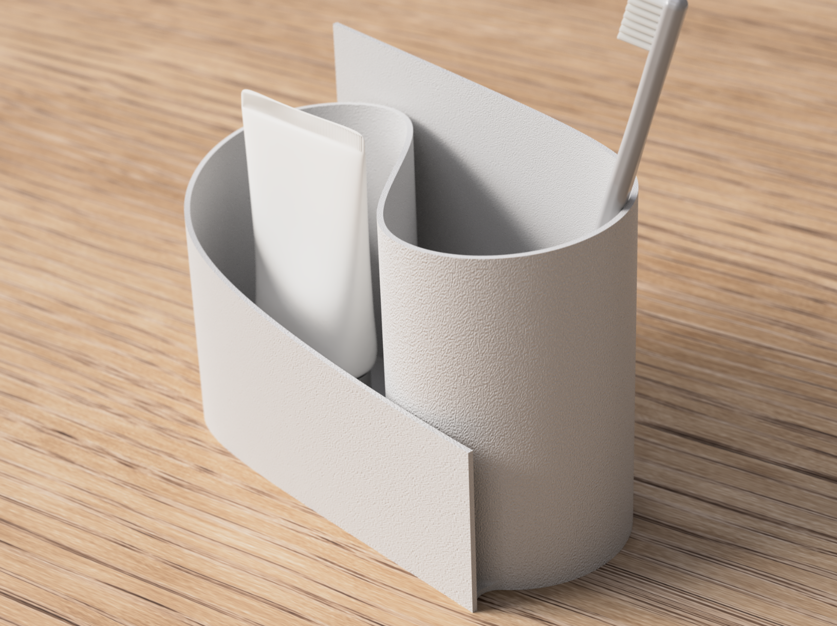 Eleganz im Bad: Unser wellenförmiger Organizer setzt Zahnpasta und Zahnbürste stilvoll in Szene – präziser 3D-Druck für dein tägliches Wohlbefinden.